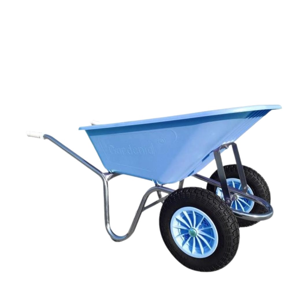 Carriola certificata per uso alimentare che garantisce maggiore stabilità grazie alle due ruote pneumatiche con camera d’aria.