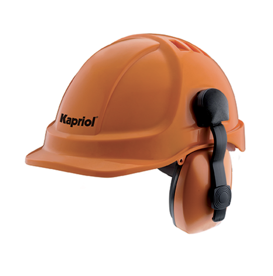 Cuffie antirumore per casco di protezione Airkap con sistema di aggancio a baionetta per il fissaggio rapido delle cuffie al casco.