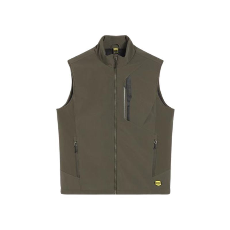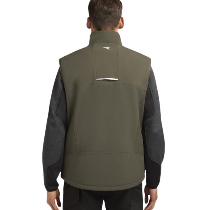 Gilet in softshell con imbottitura leggera, antivento e trattamento idrorepellente. Collo in piedi con inserto salvabarba. Fondo regolabile con coulisse e parte posteriore più lunga per miglior vestibilità. Due tasche laterali e una tasca frontale con zip e stampa termonastrata personalizzata Utility. Dettagli reflex per una migliore visibilità. Inserti interni in 3D mesh con apertura sul carrè posteriore per una traspirabilità ottimale.