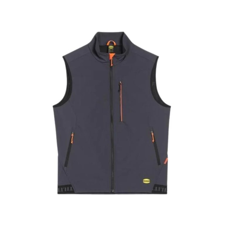 Gilet in tessuto elasticizzato con trattamento idrorepellente. Collo in piedi con inserto salvabarba. Elastico sul fondo posteriore con personalizzazione Utility per miglior vestibilità. Inserti in Ripstop stretch per una maggiore resistenza. Due tasche laterali e una tasca frontale con zip e stampa termonastrata personalizzata Utility. Apertura sul carrè posteriore per una traspirabilità ottimale. Dettagli fluo.