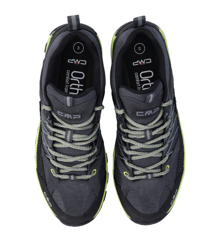 Le scarpe RIGEL sono scarponcini trekking con tomaia in pelle scamosciata, impermeabili, dallo stile sportivo e accattivante grazie ai dettagli in contrasto di colore. Si adattano a tutte le superfici, asciutte o bagnate, grazie alla struttura e la mescola della suola CMP FullOn GRIP.